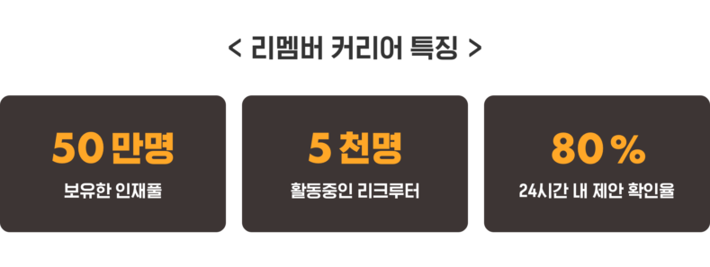 리멤버 커리어에는 4개월 만에 50만 명의 인재가 프로필을 등록했다. 다른 채용 포털에서는 찾기 힘든 잠재적 구직자 들이 많은 것이 특징이다. 이들은 평소 명함관리 용으로 리멤버를 사용하다가 리멤버 커리어에 프로필을 등록하는 경우가 많다. 아울러 리쿠르터가 제안을 보내면 24시간 이내 해당 메시지를 열람하는 비율이 80%, 응답하는 비율은 50%로 리쿠르터 입장에서는 자신의 제안에 대한 반응을 빨리 볼 수 있는 것이 강점이다. 이 같은 강점으로 현재 5,000명이 넘는 리쿠르터가 리멤버 커리어를 이용하고 있다.