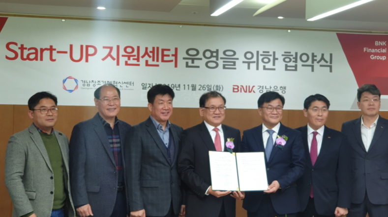 경남창조경제혁신센터가 11월 26일 경남은행과 스타트업 기업을 지원하기 위한 업무 협약을 맺었다고 밝혔다.