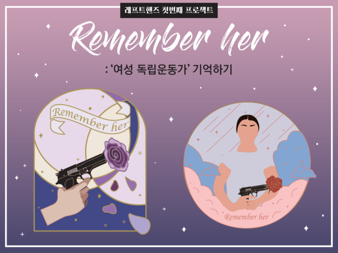 이번 프로젝트는 잊혀진 여성 독립운동가를 다시 조명하고자 금속 뱃지, 떡메모지를 선보인다. 제품에 들어가는 디자인은 공통적으로 총구에 꽃을 그려 넣어 독립 운동을 위해 각자 자리에서 누구보다도 열심히 싸웠던 이들의 노력을 표현하고자 했으며 꽃은 여자, 총은 남자를 대표한다는 고정관념을 깨기 위함이란 설명이다.