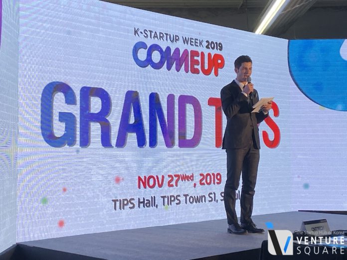 2019 그랜드팁스가 팁스타운에서 27일 열렸다. 그랜드팁스는 2019년 웰컴투팀스와 비욘드팁스 우승팀의 최종 IR 대회다. 중소벤처기업부(이하 중기부)는 비수도권 창업팀의 팁스 참여를 위해 지역순회 IR행사인 웰컴투 팁스를 10회, 팁스 창업팀의 성공적 후속투자를 위한 IR행사인 비욘드 팁스행사를 2회 개최했다. 그랜드팁스는 이들 행사의 최종 결선 성격의 행사로 비욘드팁스 3개사, 웰컴투팁스 7개사가 참가했다.