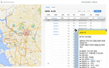 디지털 운송 플랫폼에서 등록차량 위치와 온도를 실시간으로 파악하면서 관제를 하며 플랫폼 상에서 제한온도의 범위를 설정할 수 있다. 설정된 제한온도를 벗어나면 등록된 수신인들에게 실시간으로 카카오톡을 통해 알림을 전송한다.