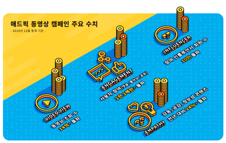 회사 측은 애드픽 영상 캠페인은 인플루언서가 자신의 소셜 계정에 어울리는 글로 동영상을 소개하기 때문에 시청자에게 거부담이 없도 대규모 소셜 매체를 운영하는 인플루언서 활동으로 단기간 바이럴 효과를 기대할 수 있다고 설명했다.