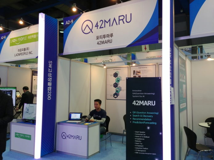 AI 스타트업 포티투마루(42MARU)는 지난 4일부터 코엑스에서 열린 대한민국 소프트웨어대전2019에서 사내 헬프데스크용 AI 챗봇 솔루션을 공개했다고 밝혔다.