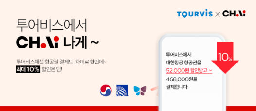 여행 플랫폼 타이드스퀘어 투어비스가 간편 결제 서비스 차이를 도입했다. 투어비스 사용자는 차이로 결제하면 10% 할인 혜택을 받을 수 있다. 투어비스로 항공권을 차이로 결제하면 기존 상품가에서 최대 10% 할인 운임으로 구매할 수 있는 것. 최대 할인 금액은 건당 10만원이며 결제 횟수 제한은 없다. 차이 서비스 도입에 따라 운임 뿐 아니라 첫 사용을 할 때 은행게좌와 비밀번호를 등록하면 복잡한 결제 정보 입력 없이 비밀번호 입력만으로 빠르게 결제를 할 수 있다. 또 할인 금액이나 현금영수증, 거래내역도 한 곳에서 확인할 수 있다. 신정호 투어비스 CSO는 “차이 결제는 도입 초기임에도 동남아와 미주, 유럽 등 다양한 노선에서 이뤄지고 있다”며 “이를 통해 기존 경쟁력 있던 유럽 지역을 포함해 전반적으로 운임 효율을 높이고 관련 프로모션을 활성화해 업계 우위를 확보할 계획”이라고 밝혔다.
