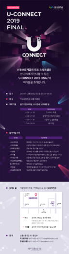 ◇[12월 19일 목요일] = U-CONNECT 2019 FINAL = 신용보증기금이 지원한 대표 스타트업을 한 자리에서 만나볼 수 있는 U-CONNECT 2019 파이널이 오는 19일 서울창업허브 10층 대강당에서 열린다. 행사에서는 참여 기업 10개사 부스 전시와 IR 피칭, 시상식, 경품 추첨, 네트워킹을 즐길 수 있다.