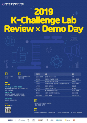 경기창조경제혁신센터가 12월 11일 2019 K-챌린지 랩 리뷰 & 데모데이(Challenge Lab Review & Demo Day)를 개최한다고 밝혔다.