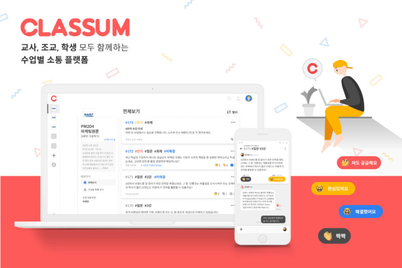 클라썸은 온라인에서 수업 구성원 사이 활발한 소통을 돕는 솔루션. 클라썸이 마련한 온라인 플랫폼을 통해 학생은 익명으로 부담없이 질문할 수 있고 SNS와 채팅 형태로 간편하게 말을 주고 받을 수도 있다. 궁금한 질문에는 ‘저도 궁금해요’ 기능으로 답변 알림을 받거나 동료 학생 질의응답에 서로 답변하며 학습효과도 높일 수 있다. 교사는 수업에 대한 피드백을 손쉽게 받아볼 수 있고 업무 부담도 줄어든다. 교사, 조교, 학생이 한 공간에서 질문을 나누기 때문에 중복 질문이 줄며 공지사항은 푸쉬알림, 읽지 않은 사람 대상 재알림을 통해 확실히 전달한다. 모든 게시글은 검색, 카테고리 필터를 사용해 쉽게 관리할 수 있으며 수업 현황과 학생 참여도 통계를 실시간 확인할 수 있다. 현재 카이스트, 서울대학교, K-MOOC를 비롯한 국내외 교육기관 300여 곳이 클라썸을 사용하고 있다. 수업당 평균 180개 질의응답이 나오며 이 가운데 3분의 1은 학생이 직접 답변, 선순환적 사용자 반응이 나타나고 있다는 설명이다.