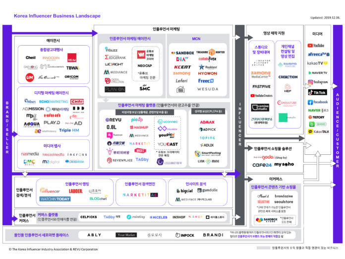 사단법인 한국인플루언서산업협회가 글로벌 인플루언서 마케팅 플랫폼 레뷰코퍼레이션과 공동 연구개발한 대한민국 인플루언서 비즈니스 랜드스케이프를 발행했다. 대한민국 인플루언서 비즈니스 랜드스케이프는 급성장하고 있는 국내 인플루언서 산업지형에 대한 이해를 돕기 위해 제작한 자료로 인플루언서 산업의 구조와 각 영역에서 활동하는 주요 플레이어들의 정보가 한 눈에 들어오도록 정리했다.