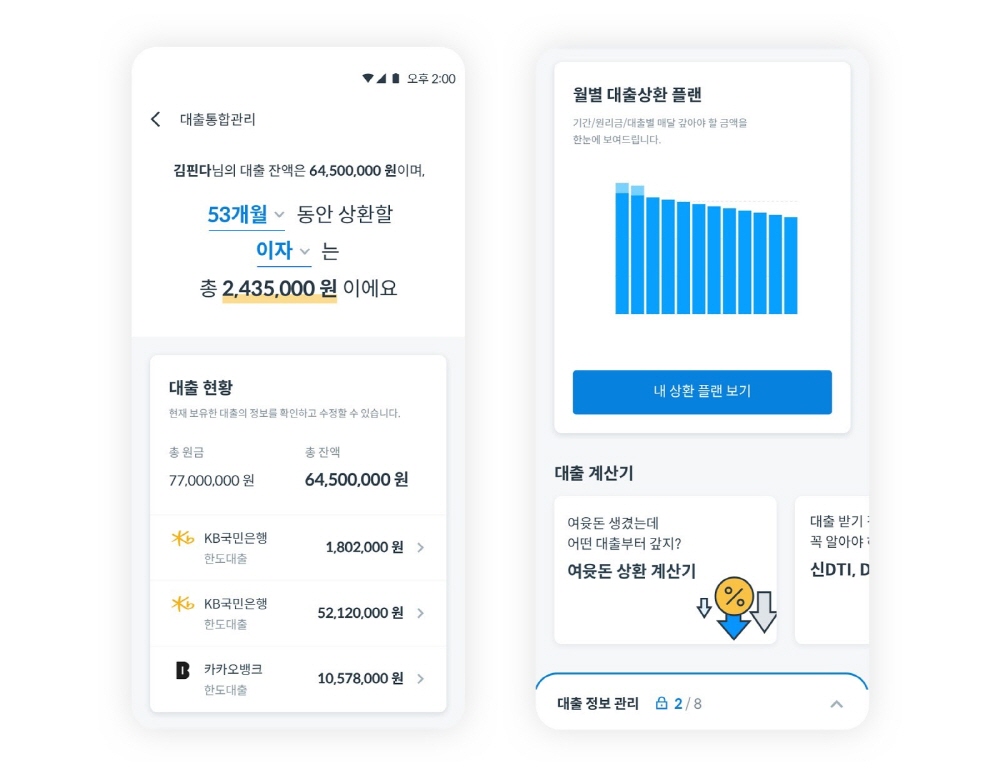 해당 서비스에서는 갚아야 할 대출 잔액과 예상 이자액, 금리, 상환방식 등 각 금융기관별 세부 대출 조건들을 한 번에 확인할 수 있다. 대출별 금리나 상환 조건들을 한 눈에 보여줘 어떤 대출을 빨리 정리해야 이자 절약에 가장 유리한지를 알 수 있다는 게 핀다 측 설명이다.