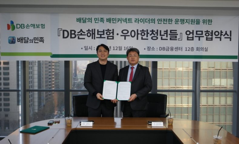 배달의민족과 DB손해보험은 보험 프로그램 출시를 위해 지난 16일 서울 강남구 대치동에 위치한 DB금융센터에서 업무 협약식을 가졌다. 양사는 이번 업무협약을 통해 시간제 라이더 배민커넥트의 위험 보장 수준을 높이는 데 뜻을 같이 했다. 이를 위해 공유 모빌리티 기업 보험에 특화된 인슈테크 전문기업 SIMG(에스아이엠지)와 함께 자전거와 전동 킥보드 배달 운전자를 위한 보험을 개발하게 됐다.