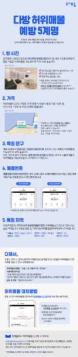 허위매물 예방 5계명에는 방 사진, 가격, 매물 설명, 매물번호, 지역 등 5가지 영역에서 허위매물 정보와 피해 시 대처법을 담고 있다.