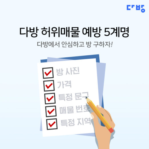 다방이 자체 매물 데이터를 토대로 한 허위매물 예방 5계명을 18일 발표했다.