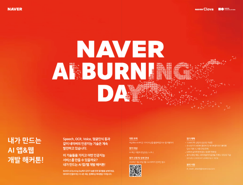 네이버가 2020년 1월 20일까지 네이버 AI 기술을 활용해 서비스를 개발하는 AI 해커톤(NAVER AI Burning Day) 참가자를 모집한다.