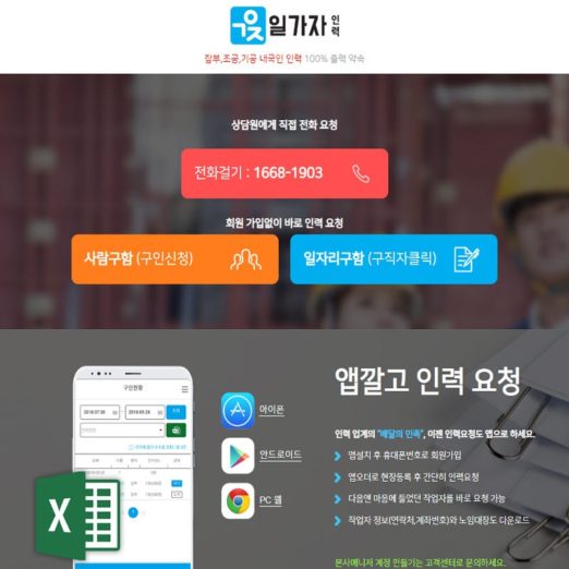 일가자인력 서비스는 연 4조 규모의 새벽인력시장을 클라우드 기반 중개 관리 시스템과 일가자-구인, 일가자-구직 모바일 앱으로 100% 대체하는 서비스로 전일 및 실시간 맞춤 일감 정보를 기반으로 일용직 근로자가 위치기반 근태 시스템을 통해 현장으로 바로 출퇴근하고 임금직불제를 통해 정산하는 시스템으로 운영하고 있다.