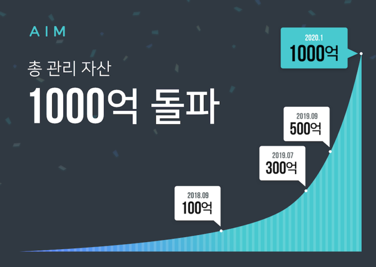 맞춤형 자산관리 서비스를 제공하는 에임은 자사 관리 자산이 1,000억 원을 돌파했다고 2일 밝혔다.
