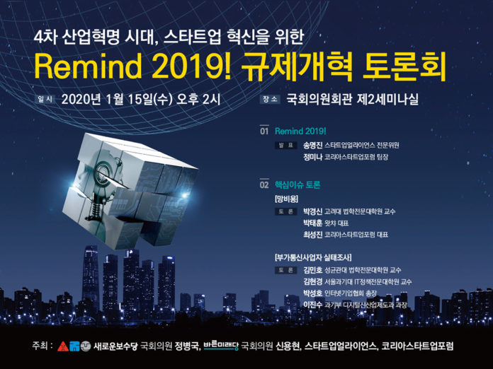 스타트업얼라이언스가 1월 15일 국회의원회관에서 ‘Remind 2019! 규제개혁 토론회’를 개최한다고 밝혔다.
