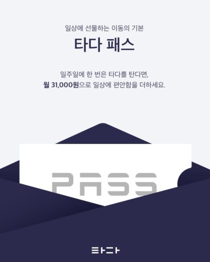 타다패스는 매달 일정금액을 내면 타다의 호출 및 예약서비스에 적용되는 쿠폰 패키지를 할인된 가격에 이용할 수 있는 서비스다. 이용자가 타다 탑승빈도 및 서비스별 개인 선호도 등에 따라 선택할 수 있도록 타다 패스 31, 타다 패스 51 두 가지 상품으로 구성됐다.