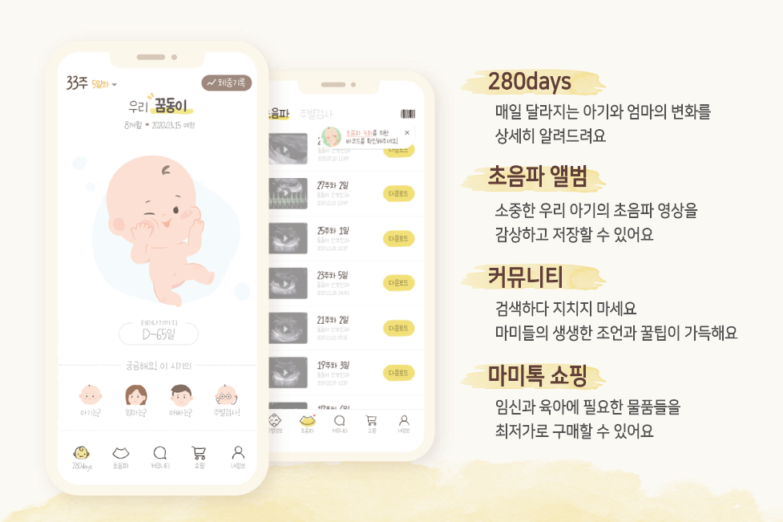 산모는 마미톡을 통해 초음파 진료 후 녹화된 영상을 다시 시청할 수 있다. 또 산모수첩 ‘280days’ 기능을 통해 임신 주차 별 태아의 성장 과정을 확인할 수 있고 임신 시기 별로 산모가 받아야 하는 검사 리스트도 함께 제공된다. 이 외에도 육아 고민과 노하우를 공유하는 커뮤니티와 육아용품 쇼핑몰 마미몰도 서비스한다.