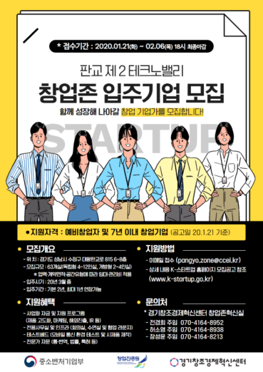 경기창조경제혁신센터가 2월 6일까지 판교 제2테크노밸리 창업존 입주기업을 모집한다고 23일 밝혔다.