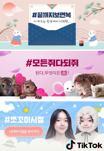 틱톡은 명절 연휴를 맞아 ‘2020 설날 이벤트’를 진행하고 스티커 3종을 출시했다. 해당 이벤트는 가족이 한자리에 모인 자리, 귀성길과 귀경길 등지에서 가족 구성원 모두가 챌린지를 재미있게 즐길 수 있도록 기획됐다. 설날 연휴를 이틀 앞두고 공개된 이번 이벤트 챌린지는 △#모든쥐다되쥐, △#쪼꼬미시절, △#끝까지보면복 등이다. 이번 ‘2020 설날 이벤트’는 모두 1월 29일까지 진행되며, 틱톡 앱에서 각각 ‘#모든쥐다되쥐’, ‘#쪼꼬미시절’, ‘#끝까지보면복’ 해시태그를 입력하면 자동으로 스티커가 구현된다.