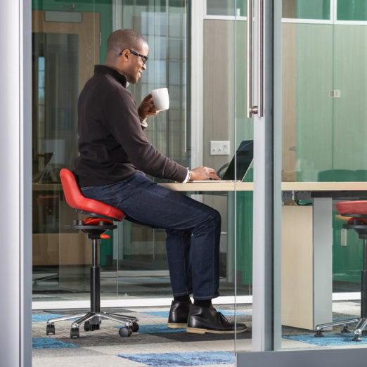QOR360은 무릎의자처럼 무릎을 엉덩이 아래로 놓지만 무릎을 압박하지는 않는다. 대신 양쪽 관절을 90보다 크고 180보다 작은 둔각으로 설정, 다리의 순환을 돕고 근육 땡김을 줄인다. 또 앉아있으며 운동볼에 앉아 있는 것처럼 코어 운동을 하듯 계속 움직이게 하는 레드락킹 메커니즘 기술이 접목됐다. 의자에 앉으면 아이와 같은 자세가 된다. 오슬로 박사는 어린아이들은 본능적으로 좋은 자세를 취한다고 한다.