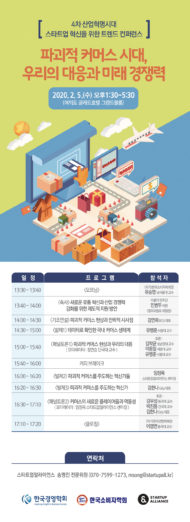 스타트업얼라이언스가 한국경영학회, 한국소비자학회와 함께 ‘4차 산업혁명시대 스타트업 혁신을 위한 트렌드 컨퍼런스(부제: 파괴적 커머스 시대, 우리의 대응과 미래 경쟁력)를 2월 5일 여의도 글래드호텔에서 공동 개최한다.