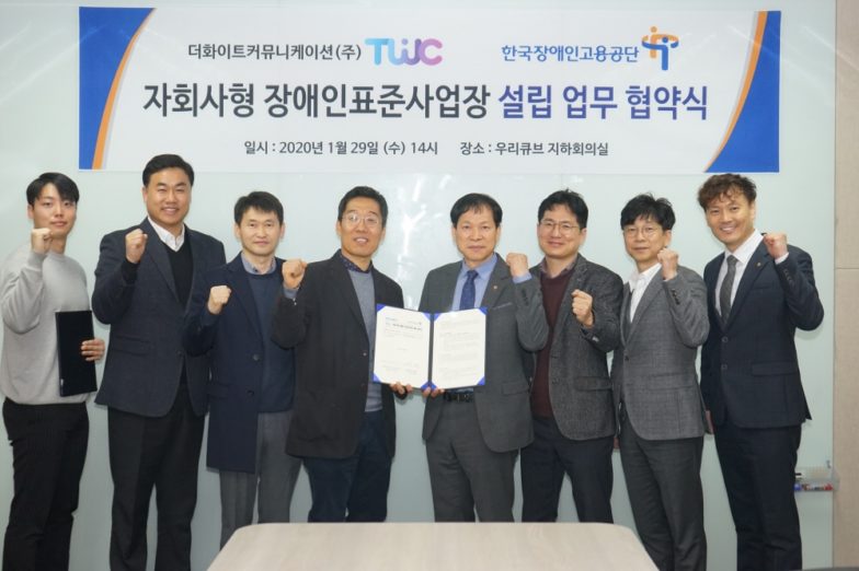 더화이트커뮤니케이션이 1월 29일 한국장애인고용공단과 장애인 일자리 창출을 위해 자회사형 장애인 표준사업장 설립 협약을 맺었다고 밝혔다.