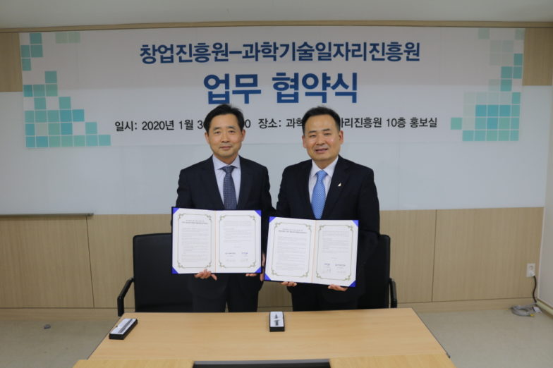 창업진흥원이 1월 30일 과학기술일자리진흥원과 혁신적 창업기업 발굴·육성과 공공 연구성과 활용·확산을 위한 업무협약을 맺었다고 밝혔다.