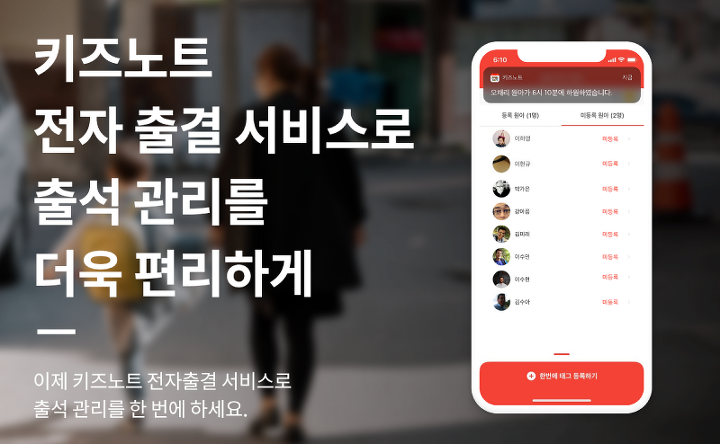 전자출결 서비스는 올해 3월 보건복지부가 시행하는 어린이집 안심등하원 알림 및 전자출결 사업에 따라 출시됐다. 해당 사업은 어린이집에서 NFC, 비콘, RFID 등 전자장비로 등·하원 시간을 확인하면 자동으로 키즈노트 서비스와 보건복지부 보육통합정보시스템으로 연동되는 것을 골자로 한다.