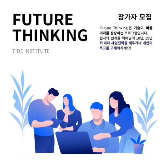 ◇[2월 26일 수요일] = 2월 Future Thinking = 타이드인스티튜트가 주최하는 2월 퓨쳐 씽킹(Future Thinking)을 오는 2월 26일 수요일 팹랩서울에서 진행한다. 퓨쳐 씽킹은 매월 진행되는 행사로 삶과 밀접한 주제를 선정해 미래를 상상하며 예상되는 문제를 정의하고 해결 가능한 미래 기술에 대해 논의하는 프라이빗 디스커션(Private Discussion) 살롱 프로그램이다. 2회차를 맞이한 이번 행사의 주제는 주거의 미래로 ‘2035년, 우리는 어디에서 살까요?’라는 내용으로 진행된다.