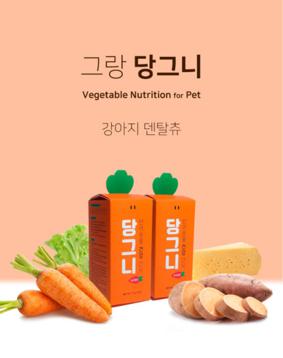 당그니는 당근을 주재료로 만든 간식으로 당근에 포함된 항산화 영양소, 파이토 케미컬을 공급해 눈과 장 건강에 도움을 줄 수 있고 해초추출물, 덱스트라이나아제를 처가해 플라그와 치태형성을 방지, 분해해 구강과 치아건강에도 유용하다는 소개다. 당근은 알갱이채로 함유해 소비자가 직접 보면서 믿고 먹일 수 있고 치아에 맞물리는 덴탈츄 형태로 만들어 치아 안쪽까지 좋은 영양소가 전달되게 했다는 것. 또 적당한 물성을 선택해 통으로 급여해도 치아와 잇몸에 무리가 가지 않으며 잘게 잘라 칭찬간식, 노즈워크 간식으로 활용할 수 있다고 회사측은 전했다.