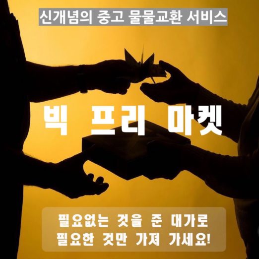 빅 프리 마켓 서비스는 돈을 주고받고 중고 물건을 매매하는 방식이 아닌 포인트를 매개로 한 중고 나눔의 서비스다. 물건을 나눔 한 만큼 나눔을 받을 수 있는 포인트가 생성된다. 수입을 얻기 위한 목적으로는 적합하지는 않으나 순수하게 개인이 안 쓰는 물건, 버려야 할 물건을 남에게 나눔 하고 그 대가로 개인이 필요한 물건을 받아 갈수 있는 물물교환의 형식이라는 점이 차별점이다.