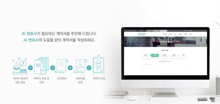리걸인사이트가 공개한 지능형 계약서 추천 및 자동작성 서비스는 수요자가 온라인으로 원하는 계약내용을 입력하면, 인공지능 기술이 자연어 처리, 키워드 추출 등을 통해 수요자의 의도를 분석한 뒤 최적의 계약서 템플릿을 추천해주는 서비스다. 수요자가 전문적인 법률지식이 없더라도 질의·응답 과정을 통해 쉽게 계약서를 작성할 수 있다는 특징이 있다.
