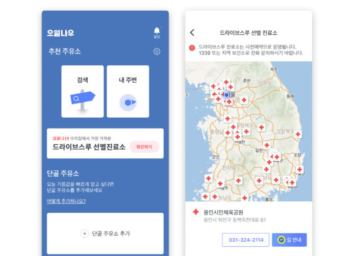 오일나우 “차량 이동형 선별진료소 검색 추가”