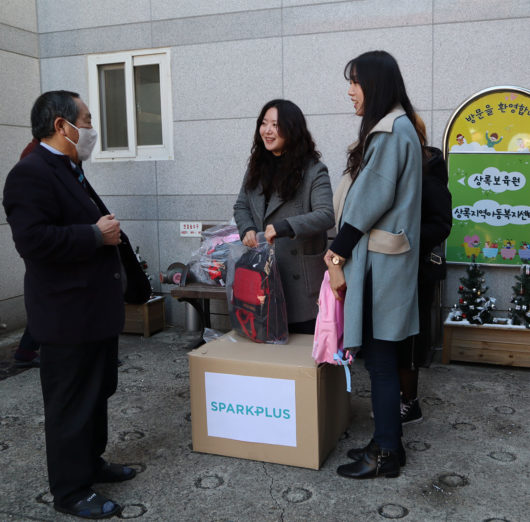 공유오피스 스파크플러스는 2019년 12월 입주사와 기부 형식 사회공헌 활동을 시작했다. 아동복지시설 꿈나무마을에 간식 기부를 시작으로 분기별로 다양한 기부 활동을 진행하고 있다. 느티나무도서관에는 도서, 식수난을 겪고 있는 아프리카에 수동식 펌프, 겨울철 독거 어르신 쌀을 전달했다. 올해 2월에는 은평보육원, 상록 보육원에 책가방과 학용품을 전하기도 했다.