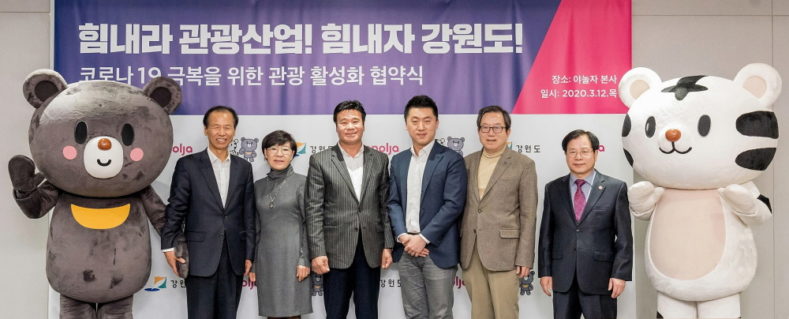이번 협약은 코로나19가 확산됨에 따라 침체기를 겪고 있는 강원지역 여행업계의 피해를 최소화하고, 장기적으로는 지역경제 활성화를 도모하기 위해 마련됐다. 야놀자와 강원도는 ▲강원도 여행 상품 전용 플랫폼 개발 및 운영 ▲공동 홍보 및 마케팅 ▲강원 전자상품권 유통 활성화 ▲숙박업소 환경 및 서비스 개선 등에 협력하기로 했다.