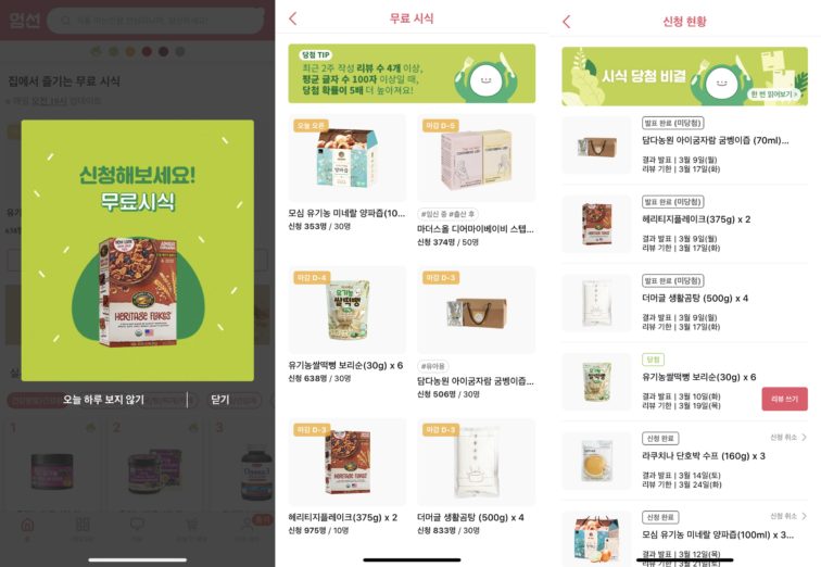 사람들이 많이 몰리는 만큼 경쟁률도 만만찮다. 제품에 따라 다르지만 30명 선정에 1200여 명이 몰린다. 당첨이 안됐다고 해서 좌절할 필요는 없다. 활동적으로 후기를 남기는 이용자 중 지역, 연령, 자녀 등 상품에 부합하는 정보와 매칭이 되면 온라인 시식단에 선정될 수 있다. 활동 이력을 쌓는 것 또한 어렵지 않다. 평상시에 마트에서 자주 볼 수 있는 제품들 중 먹어본 제품만 후기를 남기면 된다. 앱에 들락거리는 동안 알게 되는 식품 성분 정보는 덤이다.