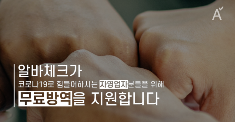 알바체크가 코로나19 확산 방지를 위해 매장 운영 자영업자에게 무료 방역을 지원한다고 밝혔다. 사회적 기업 인스케어와 협력해 항균·항바이러스 서비스를 전국 100개 규모 오프라인 매장을 대상으로 무상 지원하는 것. 이번 무상 지원에는 알바체크 서비스 이용 유무와 관계없이 참여할 수 있다.