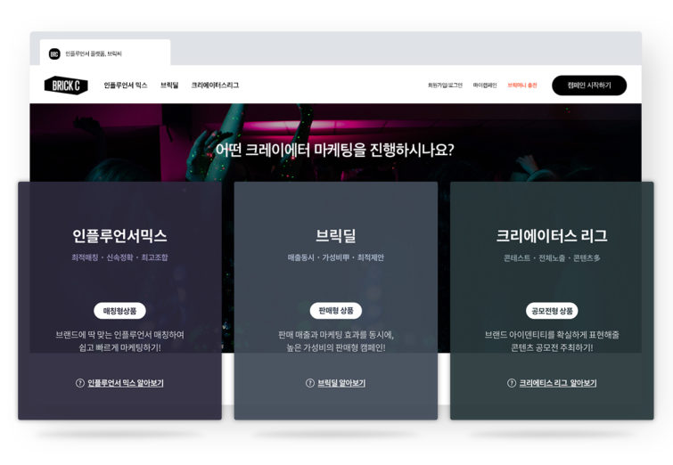 인플루언서 믹스는 캠페인의 목적과 시기, 예산 등에 따라 최적의 인플루언서 조합을 제공하는 서비스다. 팔로워 수가 적은 인플루언서를 기존 인플루언서와 적절하게 조합해 노출과 화제성은 그대로 보장하는 동시에 특정 분야에 부합하는 전문성까지 반영하여 마케팅의 효율성을 더욱 높일 수 있다. 크레이터스 리그는 공모전 형식을 도입해 컨텐츠의 질의 높인 서비스다. #아무노래첼린지 처럼 다수의 마이크로 인플루언서들이 재미와 참여를 통하여 다양한 컨텐츠를 자발적 만들어 내도록 함으로써 광고성 포스팅이 아닌 인플루언서 각자의 개성을 담은 창의적인 포스팅을 얻을 수 있다는 장점이 있다. 브릭딜은 기존 무료협찬이라는 개념을 벗어난 서비스다. 인플루언서들은 브릭씨 앱에서 자신이 선택한 제품을 선택하고 포스팅 등으로 마케팅에 참여할 경우 자신들의 소셜 영향력에 맞춰 할인된 가격으로 이를 구매할 수 있다. 광고주는 판매 매출과 마케팅 효과를 동시에 거둘 수 있어 광고주와 인플루언서 모두를 만족시키는 운영 방식이다.