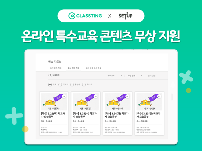 클래스팅이 특수교육연구회 셋업과 전국 특수교사들이 직접 제작한 온라인 특수교육 콘텐츠를 무료로 제공한다고 30일 밝혔다.