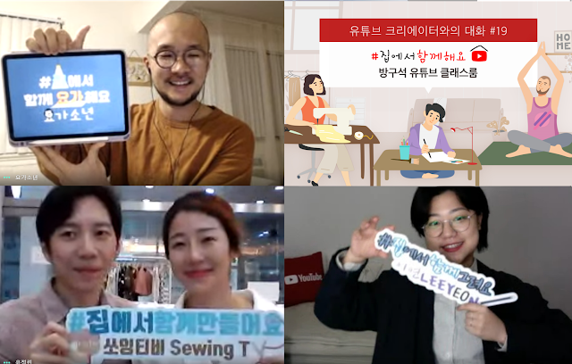 2일 구글 행아웃 화상회의로 진행된 유튜브 크리에이터와의 대화에는 쏘잉TV, 요가소년, 이연 채널 크리에이터가 참가해 달라진 일상에서의 콘텐츠 제작 노하우를 전했다. 세 명의 크리에이터들은 “사회적 거리두기가 계속되면서 구독자 수가 증가했다”고 입을 모았다.