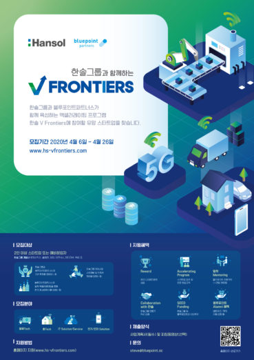 블루포인트파트너스가 진행하는 한솔 V 프론티어스는 한솔그룹의 후원으로 물류, 인테리어 및 소재, 전기전자, IT 솔루션 분야를 선도할 혁신 스타트업을 발굴하는 프로그램이다.