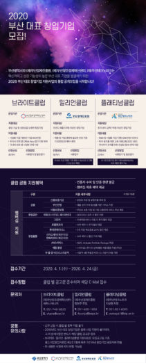 부산시와 부산창조경제혁신센터·부산경제진흥원·부산테크노파크 3개 창업지원기관이 ‘2020 부산 대표 창업기업 지원사업’ 통합 공개모집에 나선다고 7일 밝혔다.