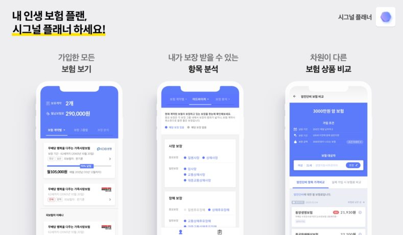 시그널 플래너는 개인이 가입한 모든 보험을 분석하고 관리할 수 있는 서비스로 설계사용 앱과 일반 고객용 앱으로 선보이고 있다. 지난 해 7월 선보인 설계사용 앱은 현재 국내에서 활동 중인 약 40만 명의 설계사 중 약 7만여 명이 사용 중이다. 일반 고객용 앱은 지난 해 12월 출시했다.
