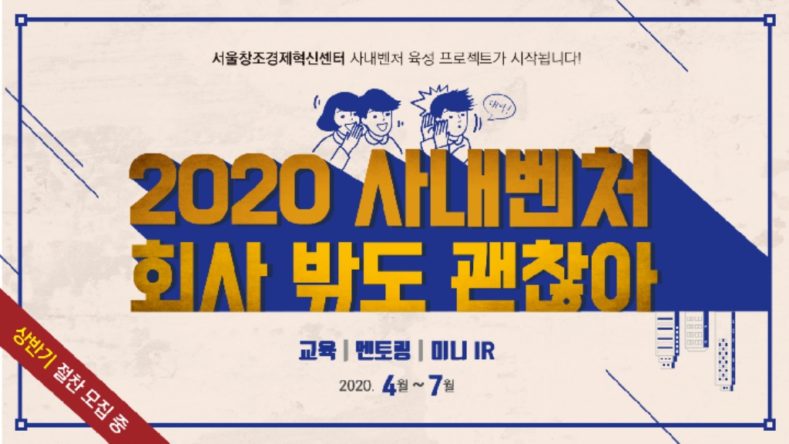 서울창조경제혁신센터가 2020 사내벤처 육성 프로젝트 ‘사내벤처, 회사 밖도 괜찮아’를 운영한다고 밝혔다.