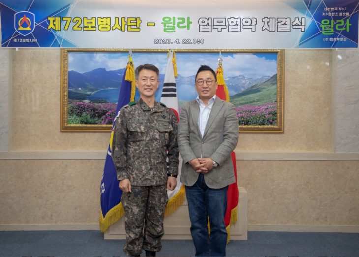 프리미엄 지식 콘텐츠 플랫폼 윌라가 육군 제72보병사단과 업무 협약을 체결하고 군 장병의 건전한 여가문화 조성과 자기계발 환경 구축을 지원한다고 23일 밝혔다.