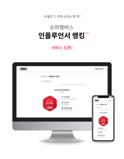 인플루언서 랭킹 조회 서비스 이용 시 블로그 순위와 상위 백분율, 1회 예상 광고비용과 함께 분야별 상위노출 비율, 상위노출 키워드를 조회할 수 있다. 해당 서비스는 별도 회원가입 없이 슈퍼멤버스 웹 사이트를 통해 누구나 무료로 이용할 수 있다.