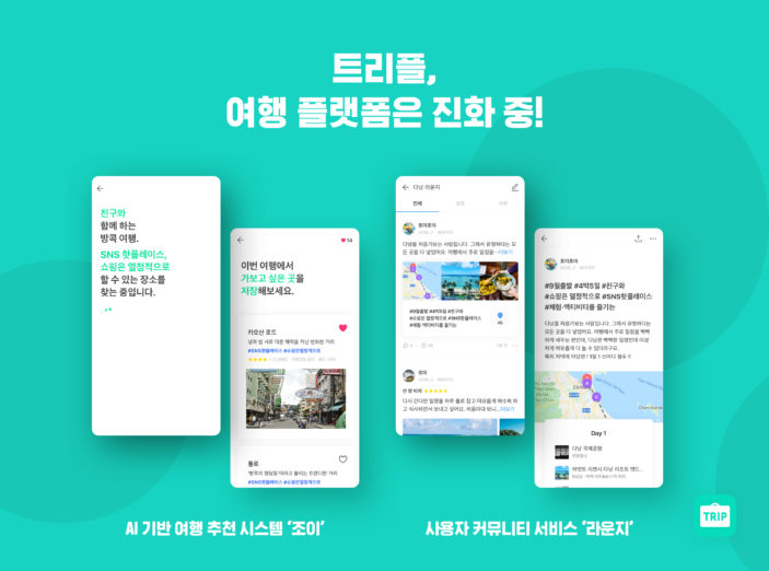 여행 플랫폼 트리플이 AI(인공지능) 기반 시스템과 사용자 커뮤니티 등 신규 서비스를 연달아 선보이며 성장에 박차를 가한다.