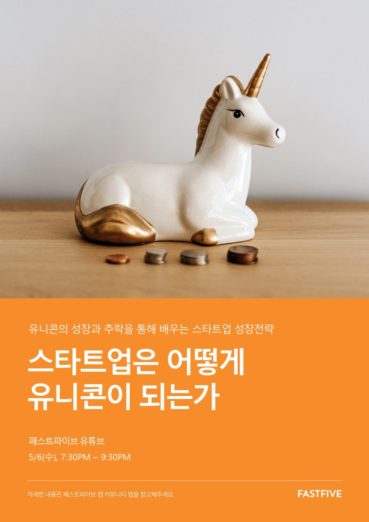 [56일 수] 스타트업은 어떻게 유니콘이 되는가=패스트파이브가 주최하는 스타트업은 어떻게 유니콘이 되는가 행사가 5월 6일 19시 30분 진행된다. 이번 행사는 실제 유니콘 이야기를 바탕으로 스타트업 성장을 위해 창업자가 알아야 할 교훈을 함께 알아보기 위한 것. <스타트업은 어떻게 유니콘이 되는가> 저자인 최정우 대표가 연사로 나선다. 최정우 대표는 2014년에 옐로모바일에 합류해 여행사업부를 맡아 옐로트래블을 공동 창업했으며 2016년 옐로모바일을 떠나 뷰티앤케이를 공동 창업했다.