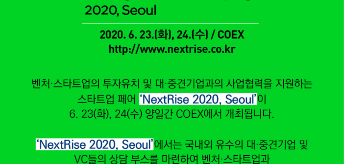 산업은행과 무역협회가 오는 6월 23∼24 양일간 삼성동 코엑스에서 스타트업 페어 넥스트라이즈2020, 서울(NextRise 2020, Seoul)을 열고 현장에서 스타트업과 대·중견기업, 투자자간 1:1 상담을 진행한다. 이번 행사에는 국내 대·중견기업 50개사와 다…